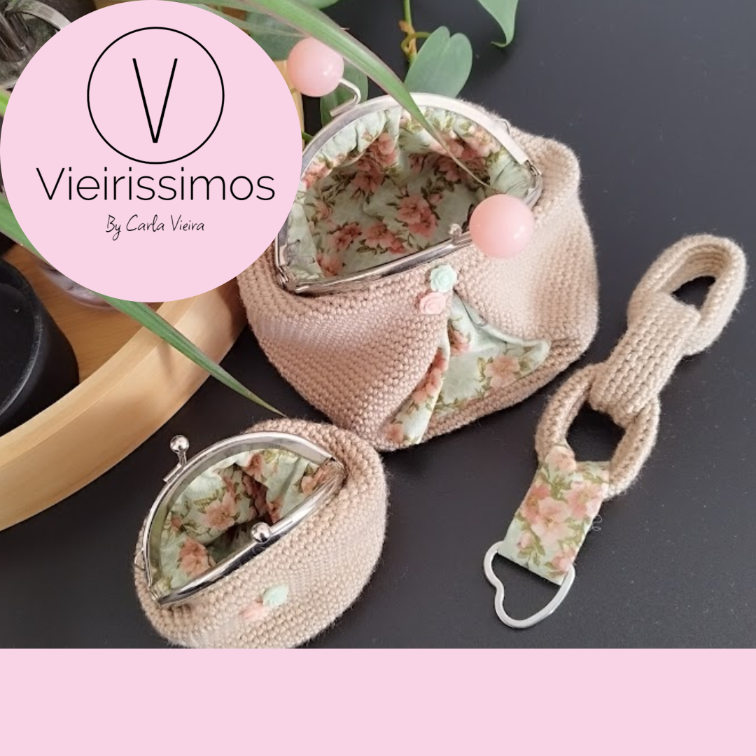 Trio porta moedas médio 10,5cm, porta moedas pequeno 6,5cm e porta-chaves em crochet forrado a tecido 100% algodão.
