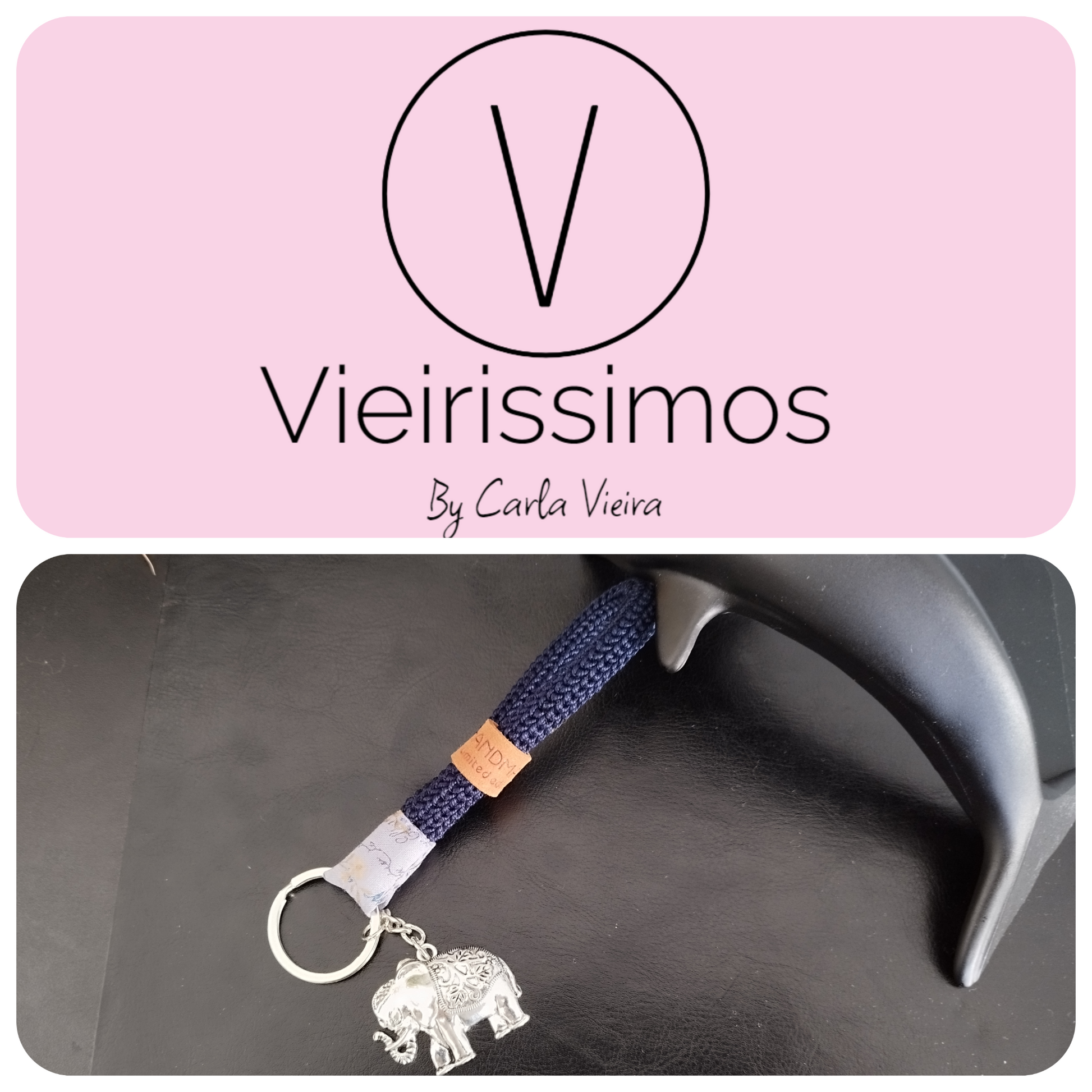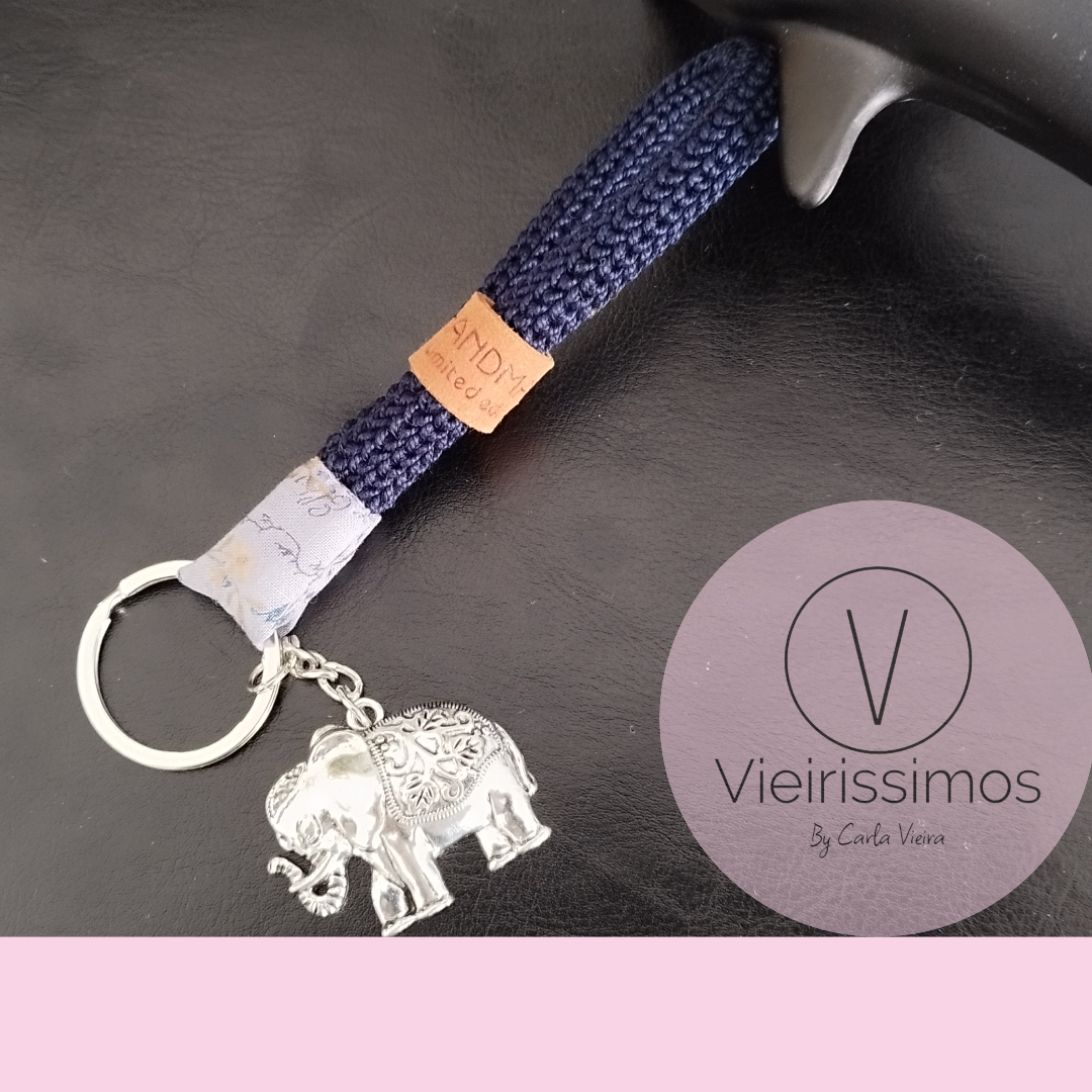 - Porta-Chaves Elefante 'Blue Garden' em crochê, algodão e aço inoxidável. Cor: Azul Escuro