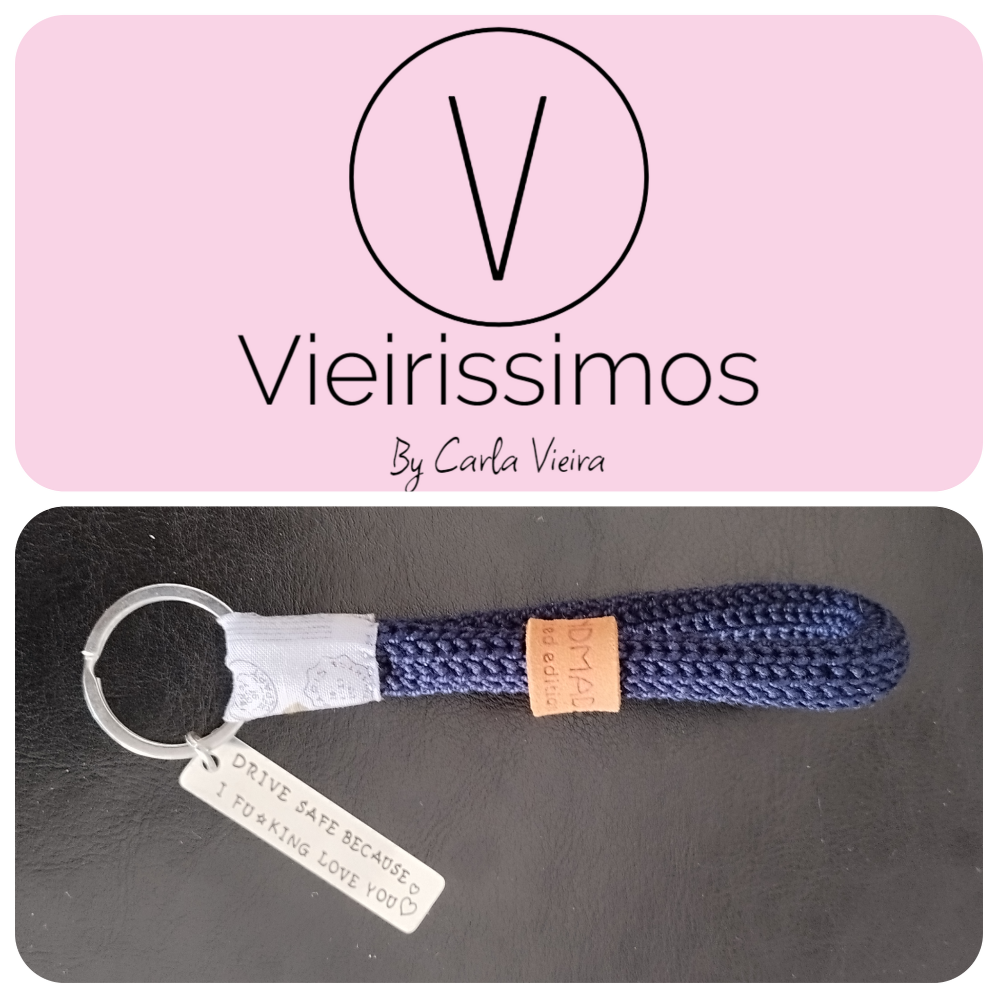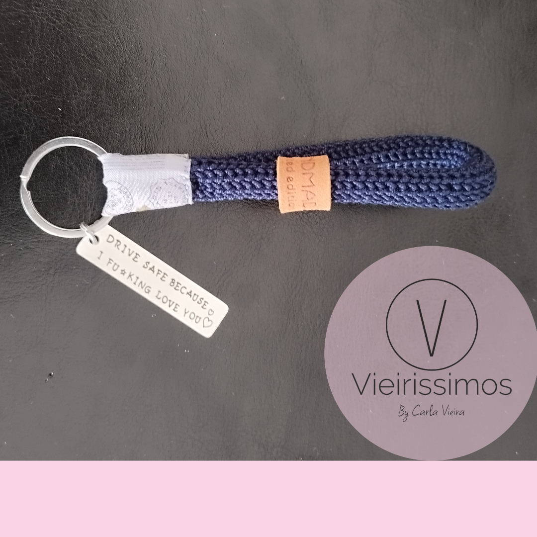 - Porta-Chaves Drive Safe 'Blue Garden' em crochê, algodão e aço inoxidável. Cor: Azul Escuro