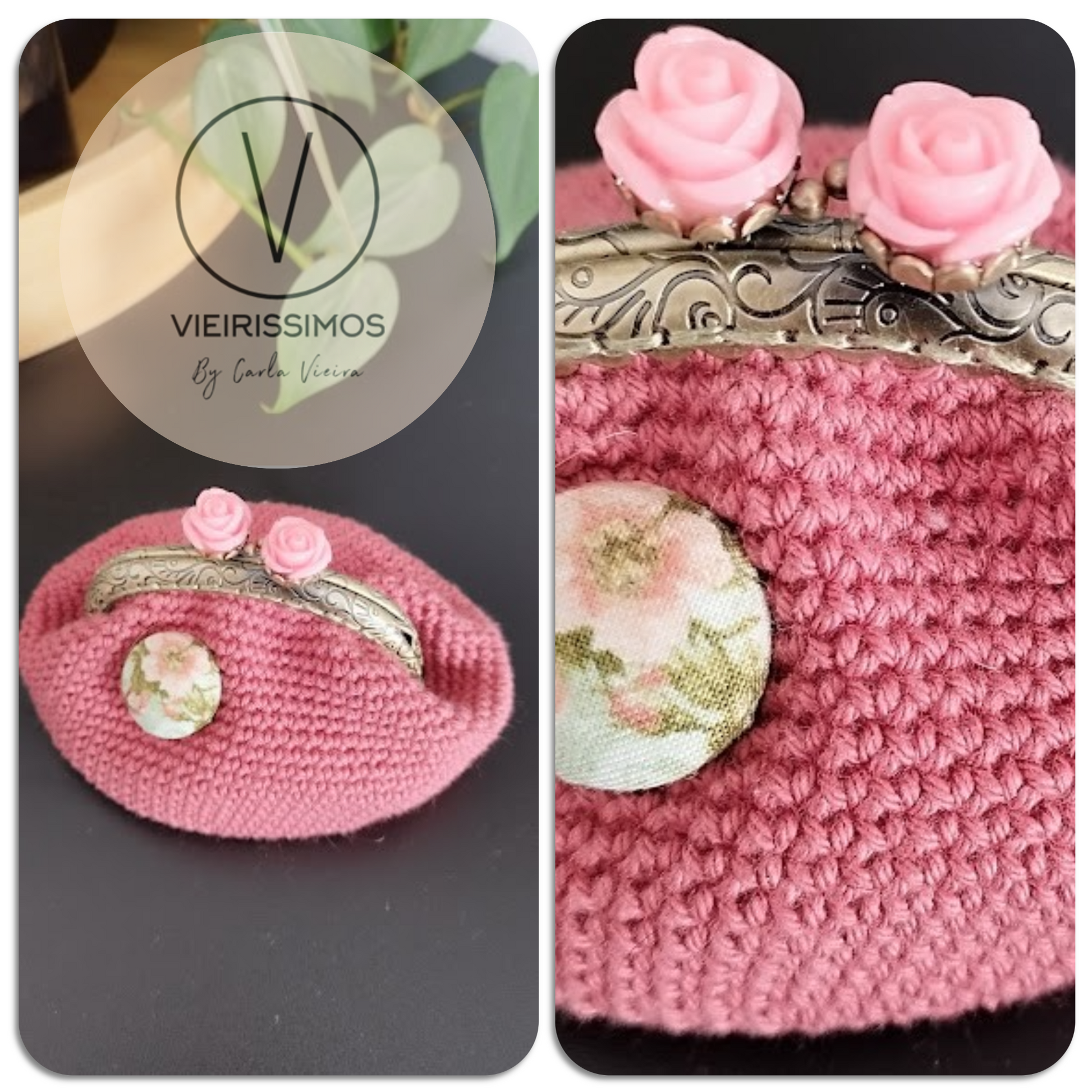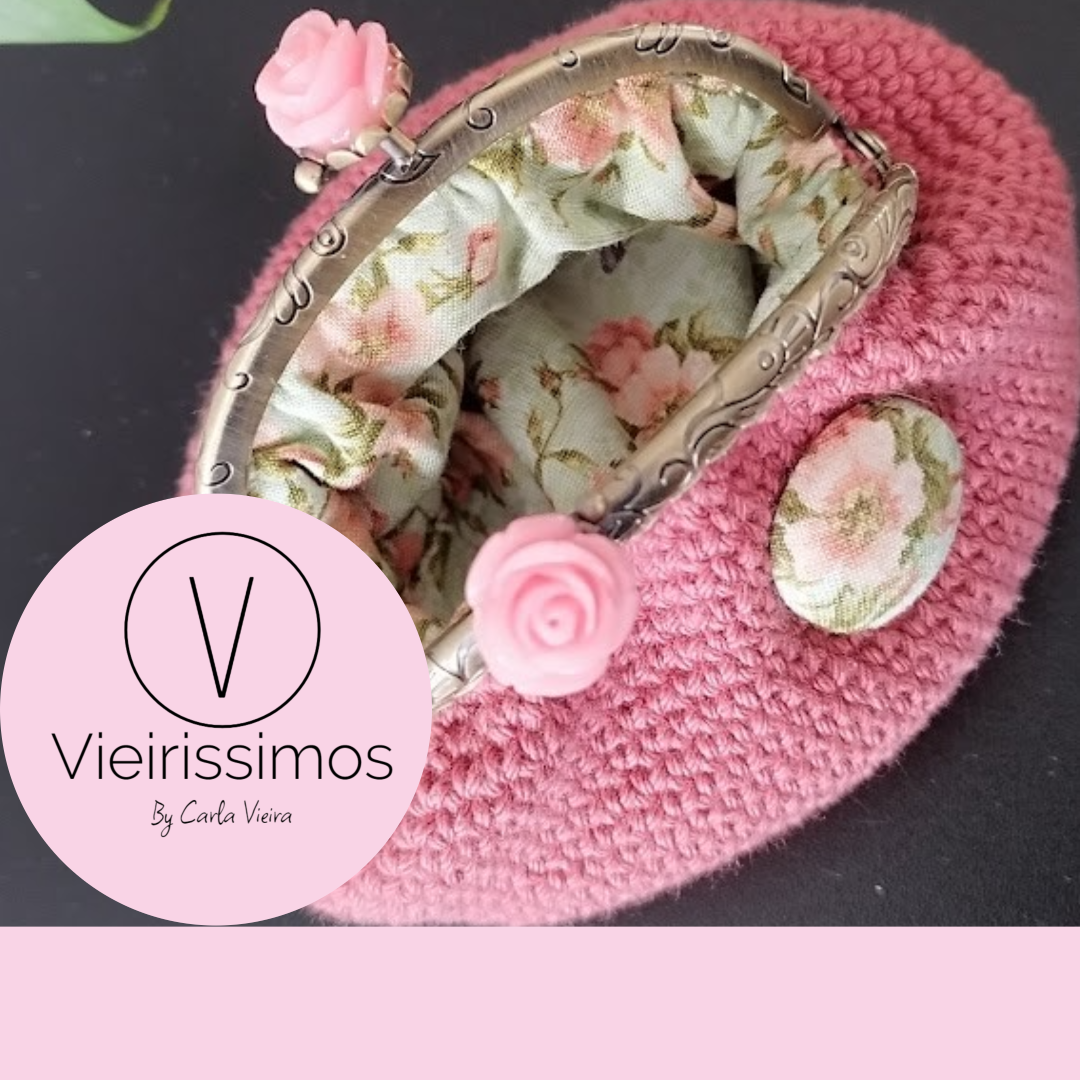 Porta moedas médio - Em crochet, forrado com tecido 100% algodão.
